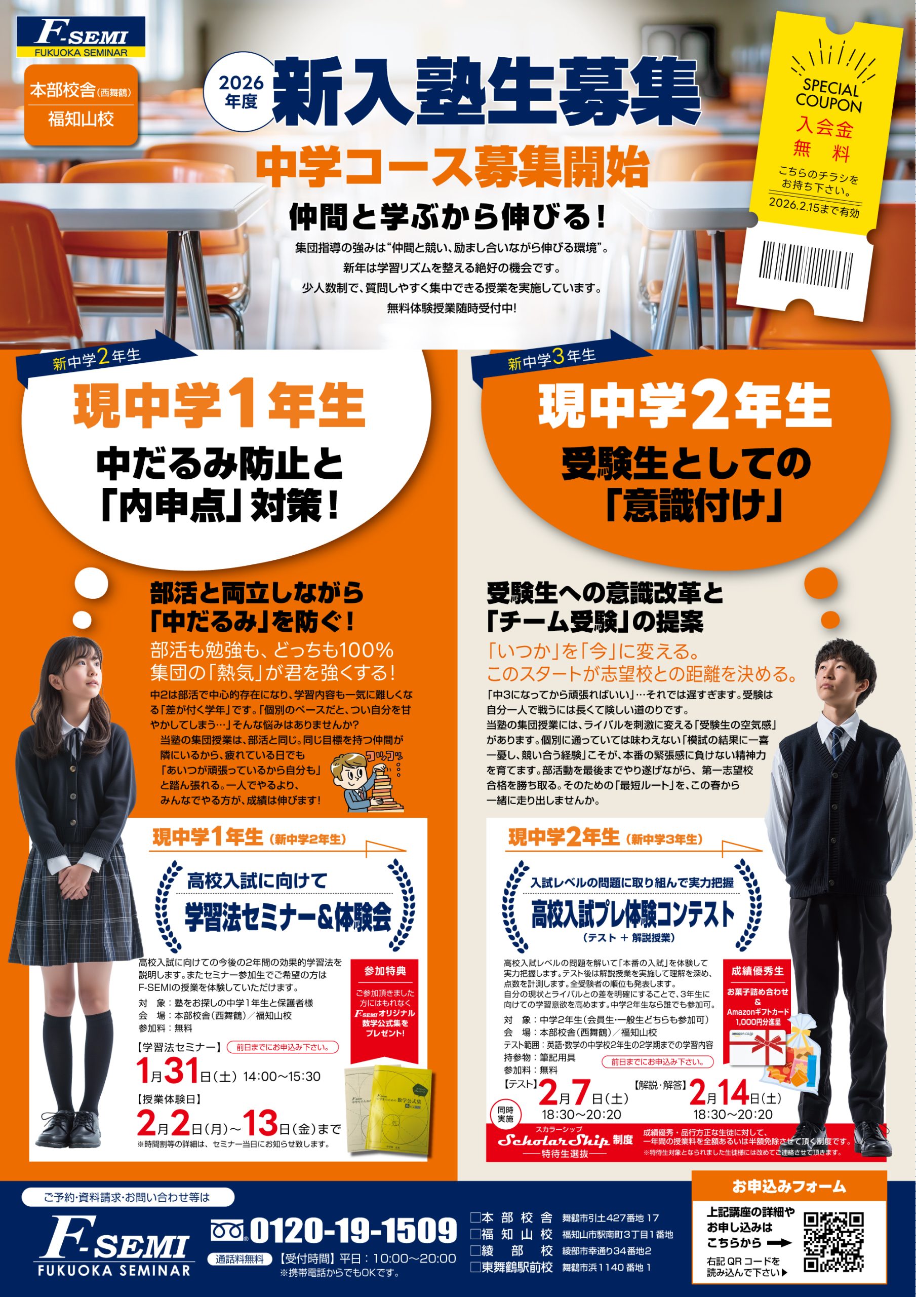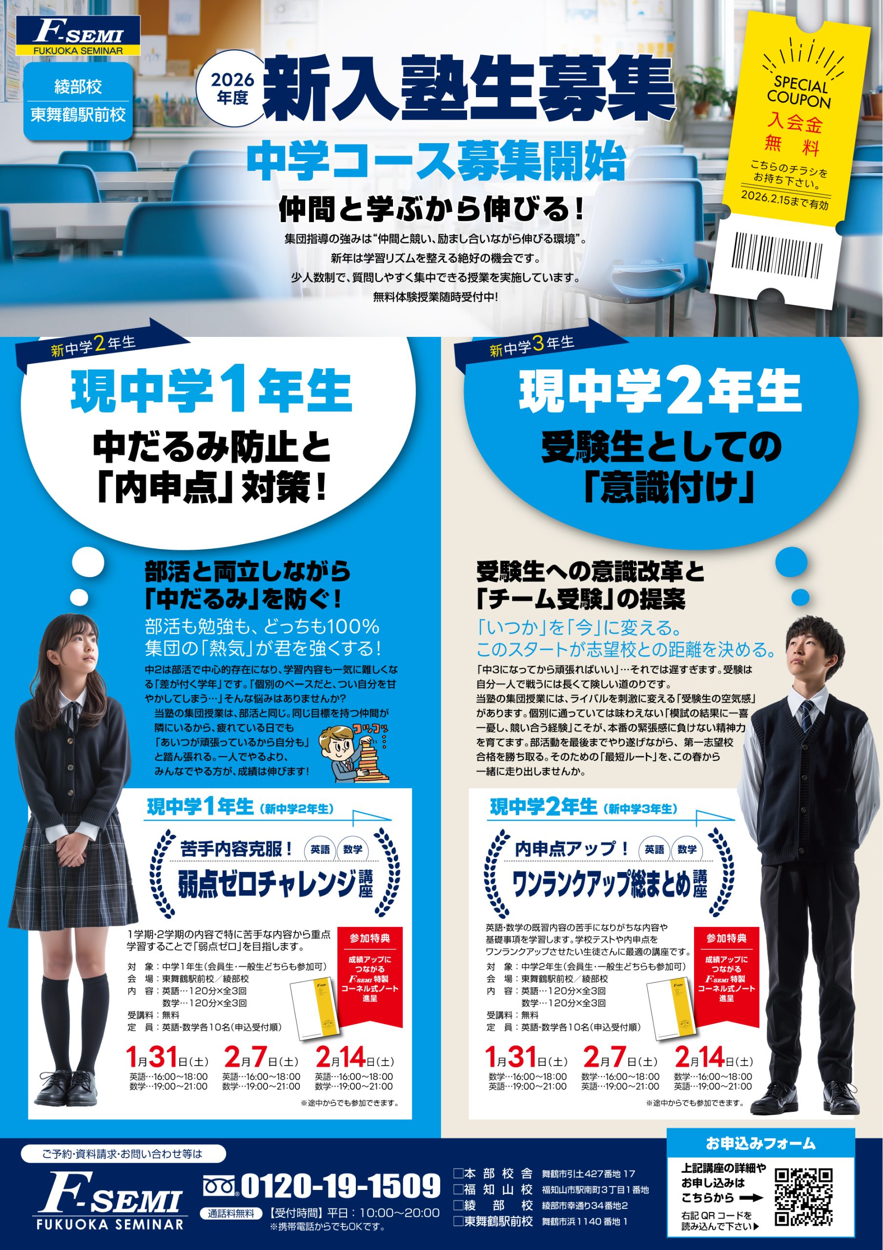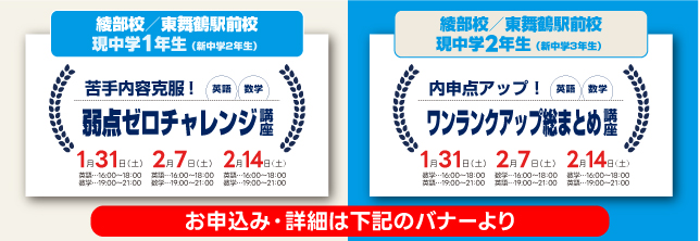 12月【A日程】・1月【B日程】の日程表とお申し込み↓